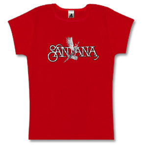 Two of the most recognizable Santana symbols combine to make this women's cut 100% red cotton tee shirt an instant classic.
